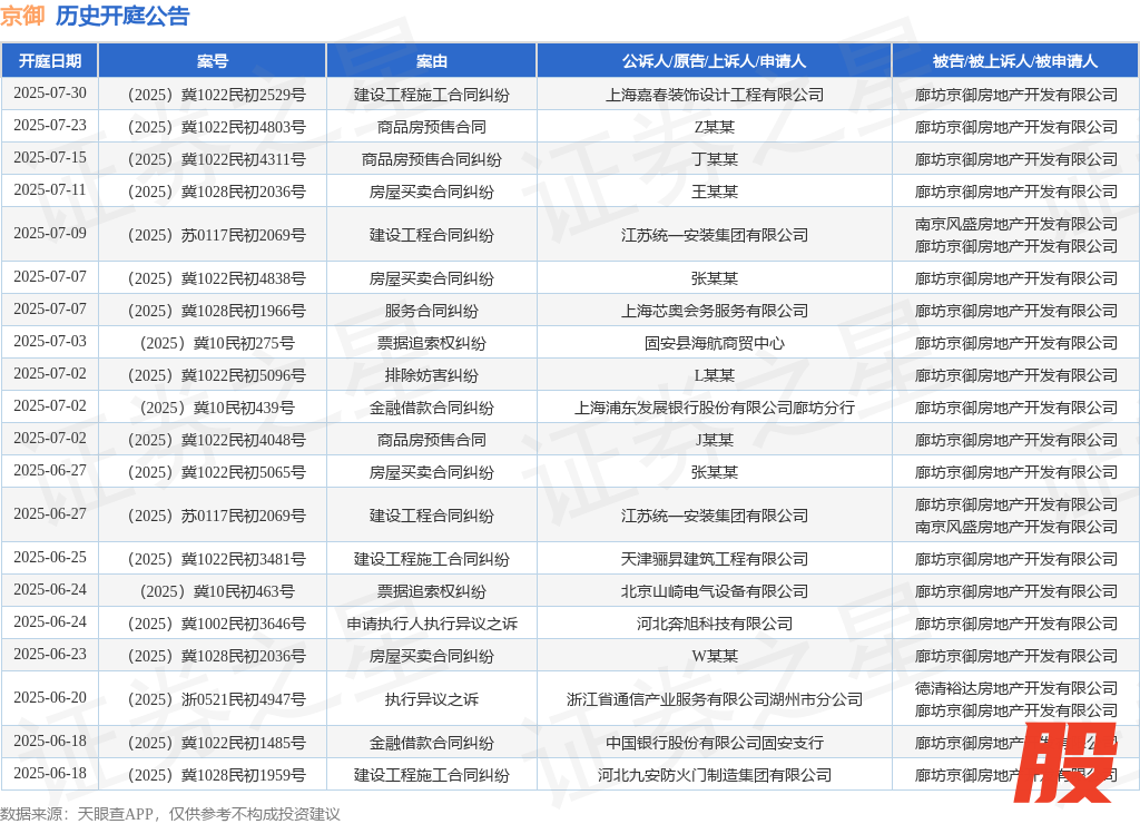 本站消息,根据天眼查APP显示股查查,近日公布了一则廊坊京御房地产开发有限公司作为被告/被上诉人的开庭公告股查查,详细内容如下: